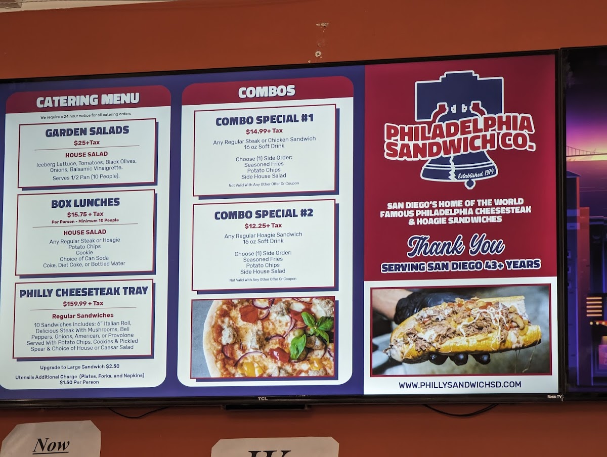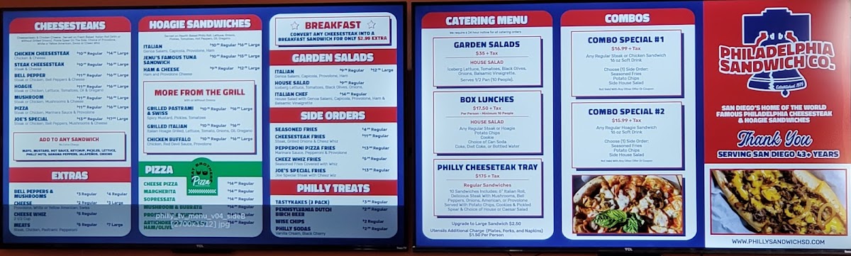 Overall, the menu at Philadelphia Sandwich Company And Catering offers a straightforward yet satisfying selection for anyone craving a tasty sandwich meal in San Diego. With combo options that include both food and drinks, it’s an ideal spot for anyone seeking comfort food that won’t break the bank.